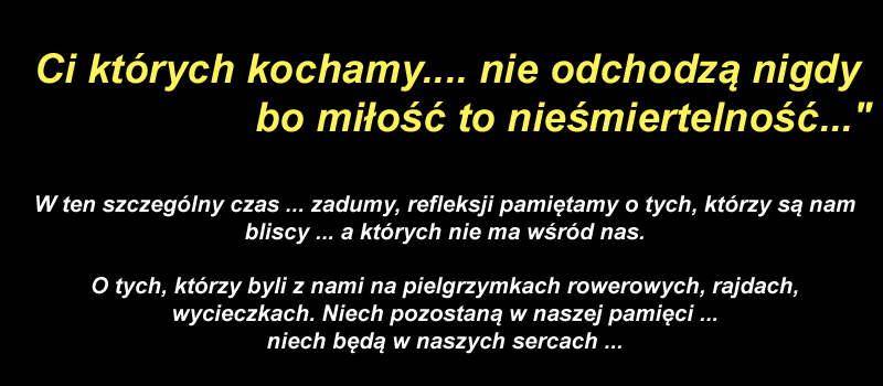 Zapraszamy wszystkich pielgrzymów (z lipca i sierpnia) i sympatyków jazdy rowerem w najbliższą niedzielę 22 września 2019r. o godzinie 18.00 - kościół parafialny p.w. św. Zygmunta na naszą wspólną mszę dziękczynną za całoroczne pielgrzymki i rajdy rowerowe. Prosimy o przekazanie zaproszenia do wszystkich uczestników naszych wyjazdów.